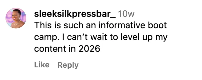 A personalized session to map out your content pillars, storytelling angles, and posting strategy so you show up with confidence and purpose.